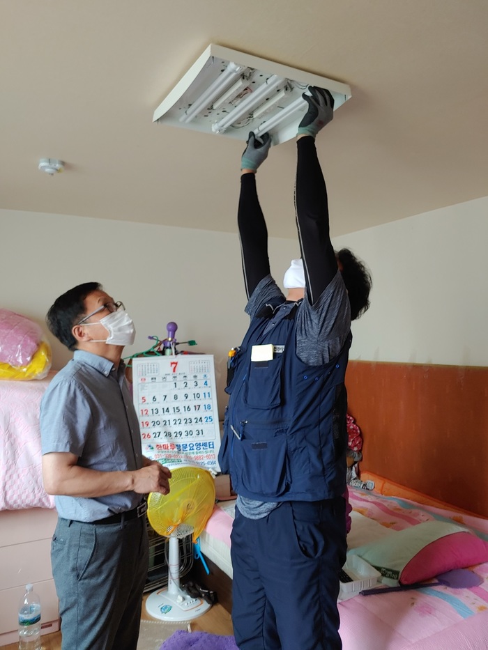 점검반은 화재 등에 취약한 주택에 거주하고 있는 대상 가구를 찾아 누전 여부를 꼼꼼히 확인하고 낡은 전기 콘센트와 형광등을 교체하는 서비스를 했다.