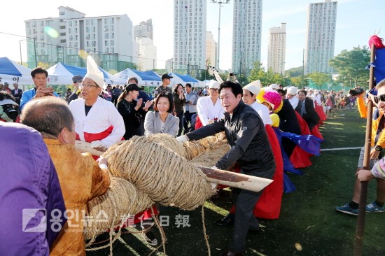 수지구 상현1동은 지난 3일 상현레스피아 축구장에서 800여명의 주민들이 참여해 열린 ‘상현동 독바위 민속 줄다리기 축제 한마당’이 대성황을 이룬 가운데 성대하게 개최됐다고 밝혔다.
