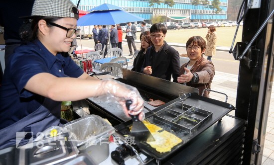 경기도가 음식판매자동차(일명 푸드트럭) 활성화 사업의 일환으로 도 공용재산 내 푸드트럭 영업을 확대하기로 한 가운데 경기도청사 내에 푸드트럭 2대가 23일 운영을 시작한다.