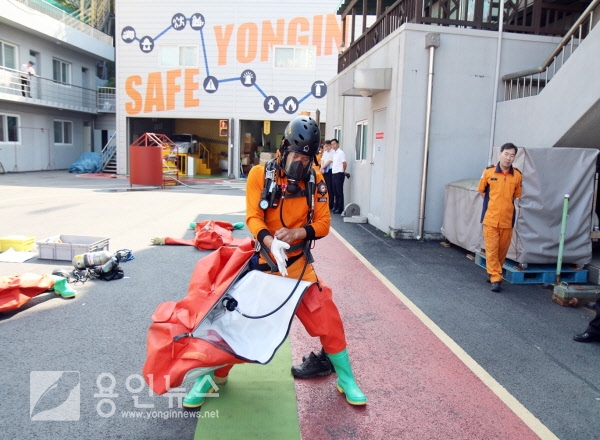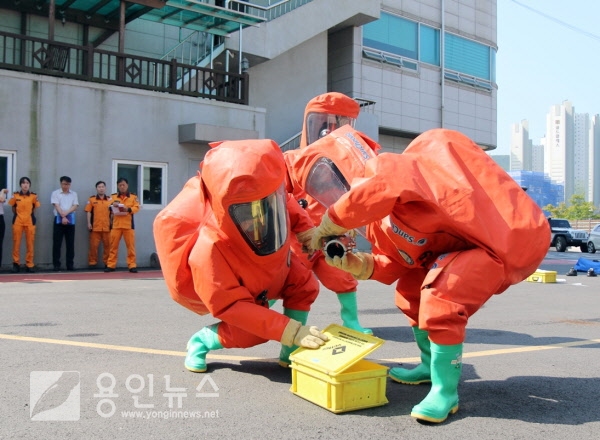 용인소방서(서장 조창래)는 27일~28일 처인구 남서면 소재 경기도소방학교에서 개최되는 2017 道 소방전술경연대회 출전에 앞서 26일 용인소방서 후정에서 유해화학물질사고 재난대응분야 시연회 자리를 마련했다.