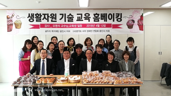 이날 홈베이킹 수강생 23명은 십시일반 재료비를 모아 새벽부터 단팥빵, 찹쌀도넛, 머핀, 케이크 등을 만들어 직접 경기도시각장애인연합회 용인시지회에 전달했다.