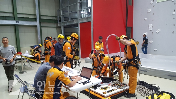 재난현장에서 중요하게 활용되는 소방관들의 로프구조기술을 평가하는 경연대회가 전국 소방 최초로 경기도에서 열렸다.