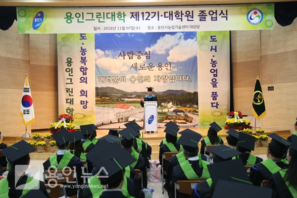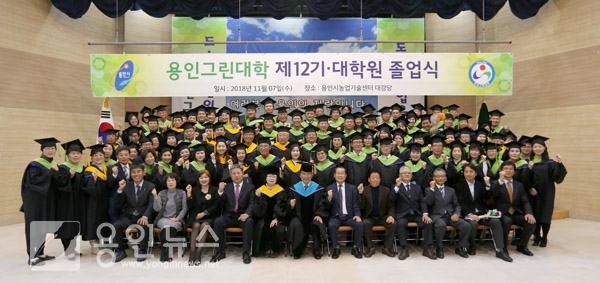 용인시농업기술센터는 7일 대강당에서 농업인재를 육성하고 귀농희망자의 정착을 돕는 용인그린대학 12기 및 대학원 졸업식을 가졌다.