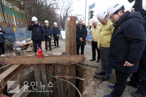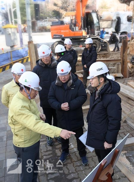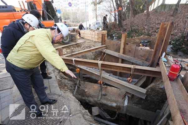 백군기 용인시장은 21일 한국지역난방공사의 온수관 보수공사가 진행되는 수지구의 한 현장을 방문해 검사 실태와 공사 진행상황 등을 긴급 점검했다.