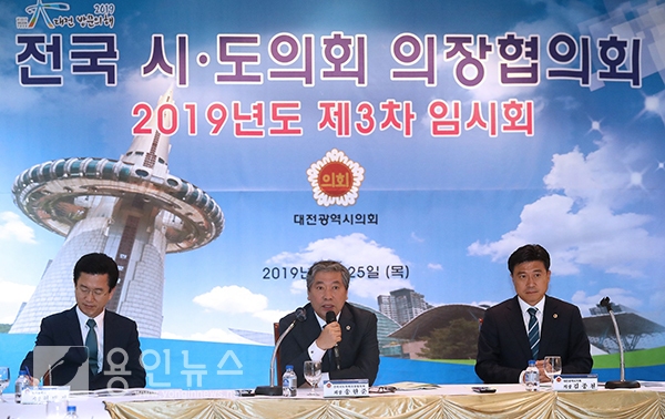 전국시도의회의장협의회가 주최하고 대전광역시의회가 주관한 이날 회의에는 협의회장인 송 의장을 비롯해 서울, 전북 등 14개 광역의회 의장이 참석했다.