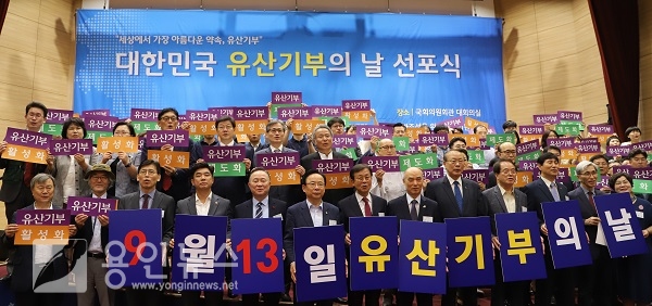 지난 10일(화) 매년 9월 13일을 대한민국 유산기부의날로 지정하자는 ‘대한민국 유산기부의날 선포식’이 국회의원회관 대회의실에서 열렸다.