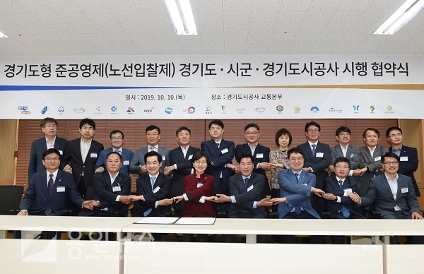 도는 개소식에 이어 노선입찰제 준공영제에 참여하는 용인, 성남, 부천, 화성, 안양, 시흥, 파주, 의정부, 김포, 광주, 광명, 양주, 이천, 구리, 의왕, 양평, 동두천, 과천, 연천 등 19개 시군, 경기도시공사와 ‘경기도형 준공영제(노선입찰제) 시행 업무 협약’을 체결했다.