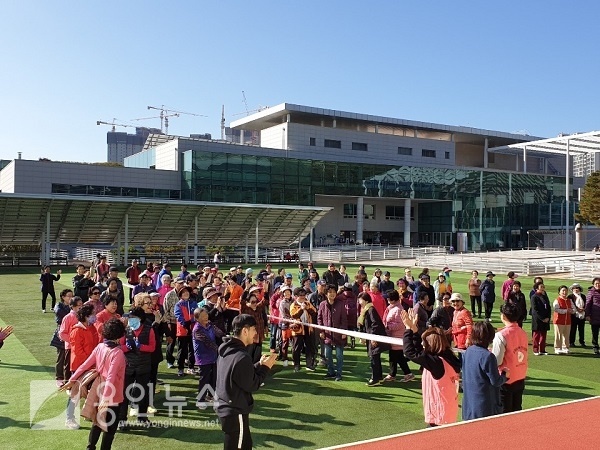 이날 150여명의 어르신들은 보건소 운동처방사가 알려주는 걷기 동작 등을 따라하며 다양한 게임을 진행했다.