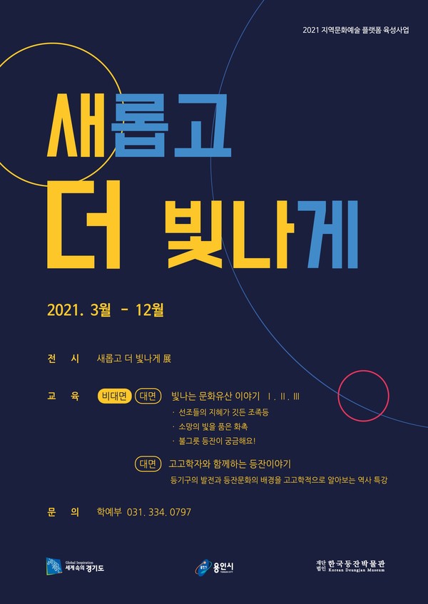 경기도와 용인시가 지원하는 교육프로그램 '2021 지역문화예술 플랫폼 육성사업 - 새롭고 더 빛나게'를 한국등잔박물관에서 진행하고 있다. 한국등잔박물관은 사회적 거리두기 상황을 고려해 소수 인원으로 모집하였으며, 대면 프로그램과 영상 콘텐츠를 활용한 비대면 프로그램을 병행하고 있다.