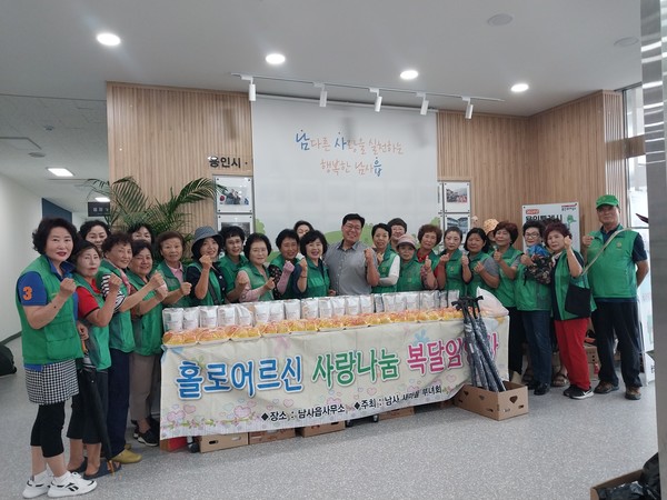 남사읍 새마을부녀회(회장 이경애)에서도 23일 홀로어르신 100가구에 설렁탕, 과일, 우산이 담긴 복달임 꾸러미를 전달했다. 복달임 꾸러미는 자연애계와 지산그룹(회장 한주식)이 후원했다.